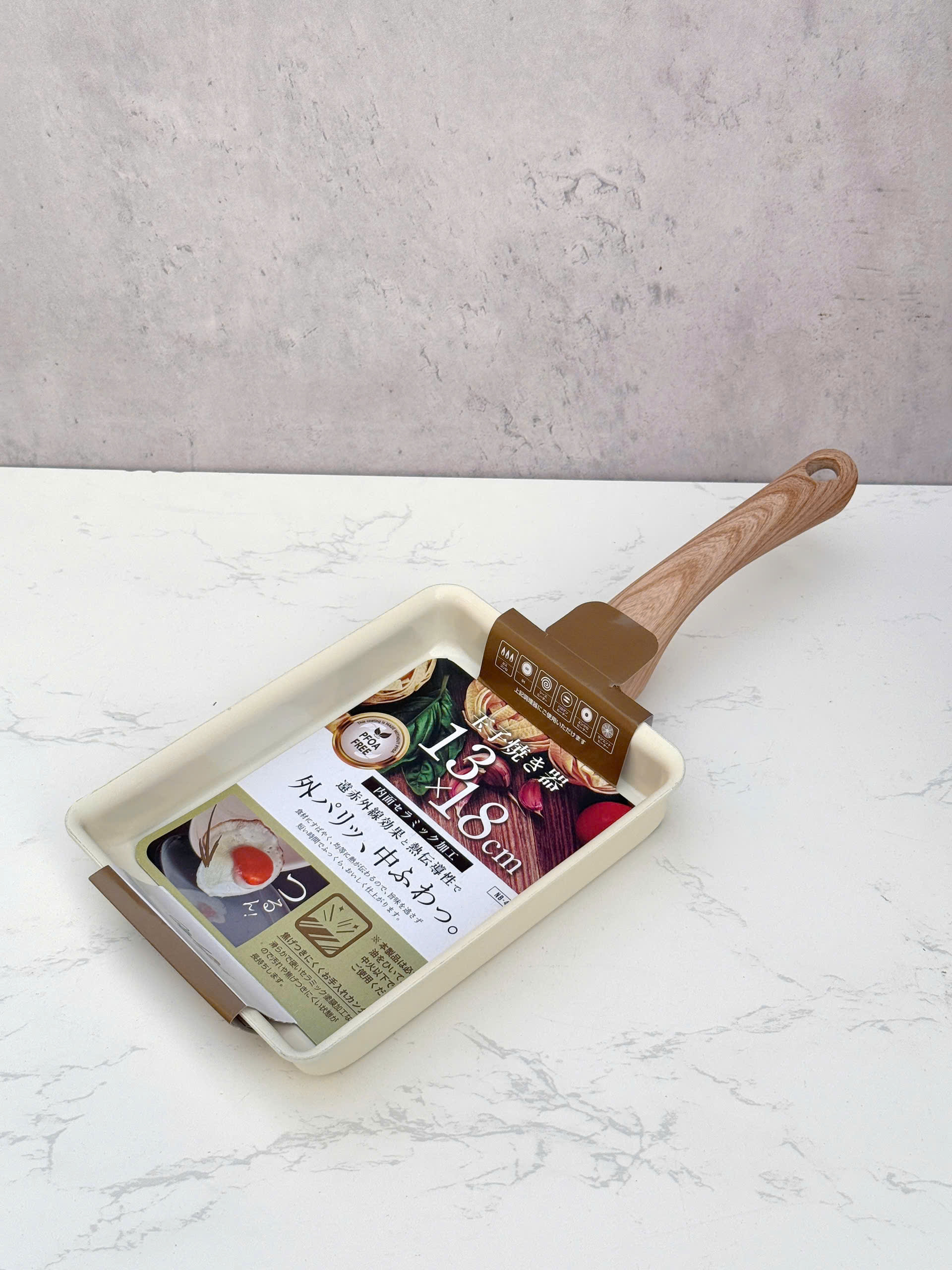 Với kích thước 18 x 14 cm, chảo phù hợp cho các món ăn nhỏ gọn, khẩu phần gia đình. Thiết kế không quá lớn giúp dễ thao tác, đặc biệt khi làm trứng cuộn nhiều lớp.