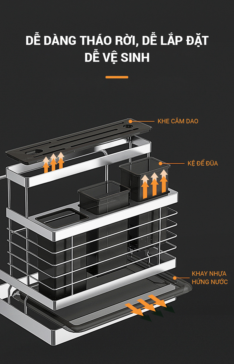 Ống đựng đũa thìa và khay hứng nhựa PP, có thể tháo ra vệ sinh dễ dàng và tiện lợi.