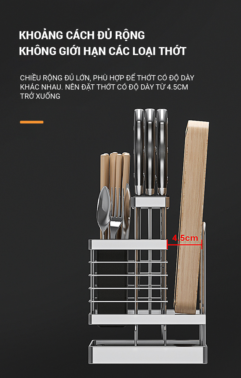 Giá gài dao thớt inox 304 cao cấp Gi-Home KT27 giúp dao thớt của gia đình bạn luôn khô ráo và sạch sẽ , đảm bảo vệ sinh khi sử dụng chế biến thực phẩm. Bạn sẽ có thể thoải mái sắp xếp vật dụng khoa học và hợp lý, tiết kiệm không gian một cách hữu hiệu, mang lại cảm giác ngăn nắp cho không gian bếp.
