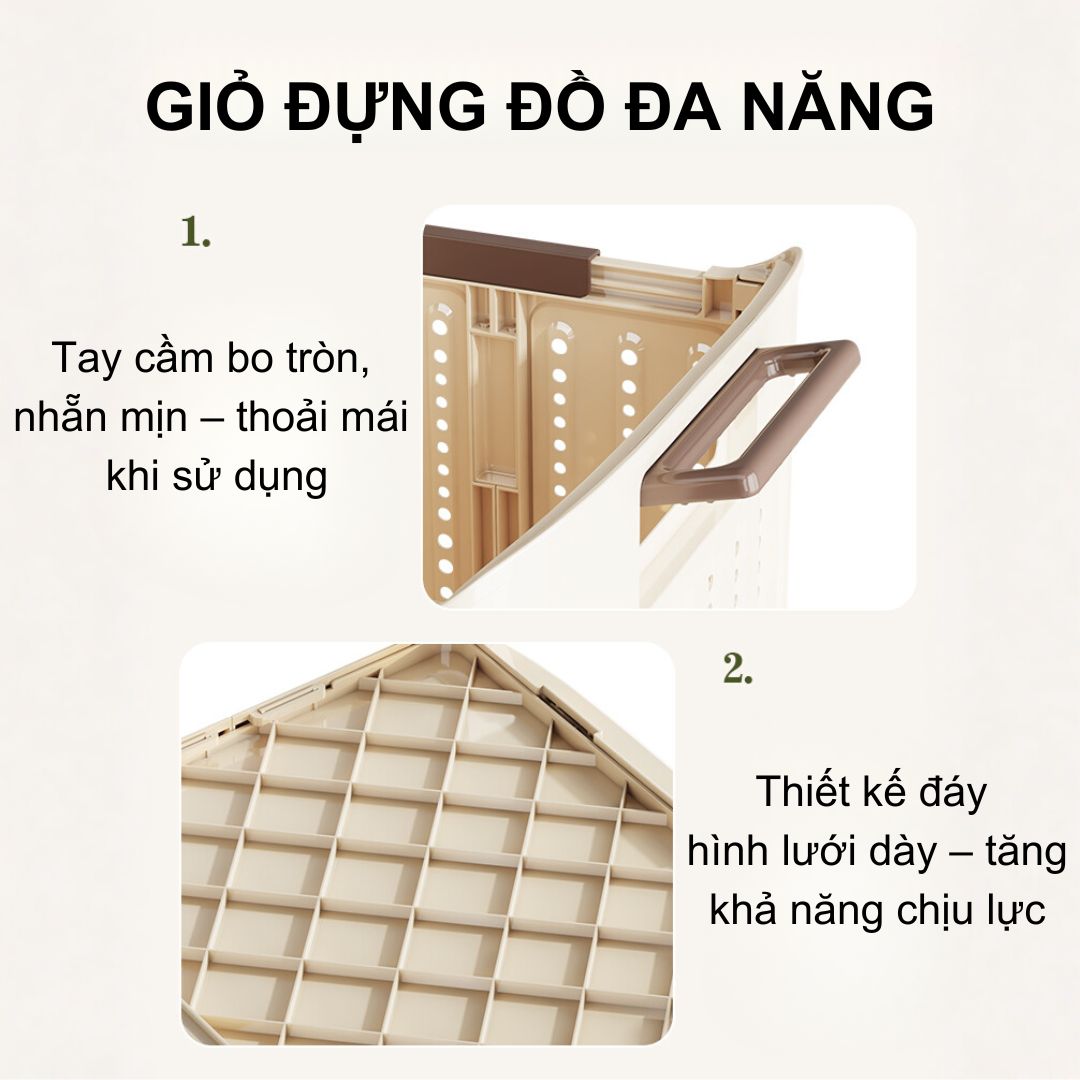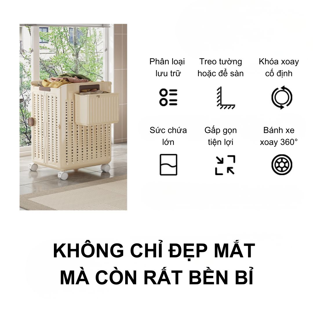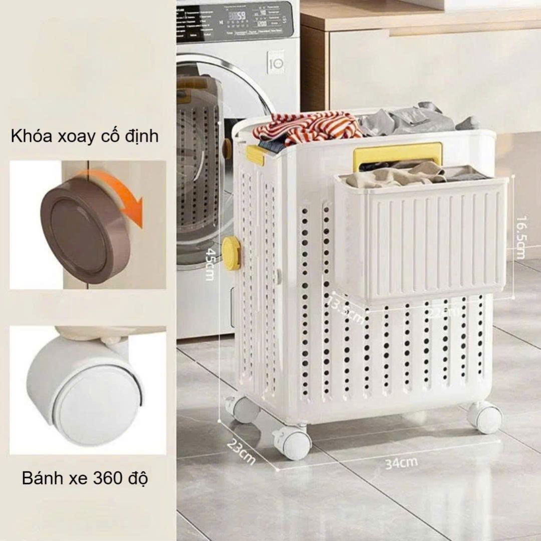 Giỏ đựng gấp gọn có bánh xe là giải pháp thông minh giúp sắp xếp đồ đạc ngăn nắp, gọn gàng trong mọi không gian. Với thiết kế linh hoạt, giỏ có thể dùng để sàn hoặc treo tường, đi kèm bánh xe xoay 360 độ và ngăn mini riêng tiện dụng. Chất liệu nhựa PP cao cấp cứng cáp, chịu lực tốt, không ẩm mốc, phù hợp đựng quần áo, đồ chơi, giày dép hay vật dụng gia đình.