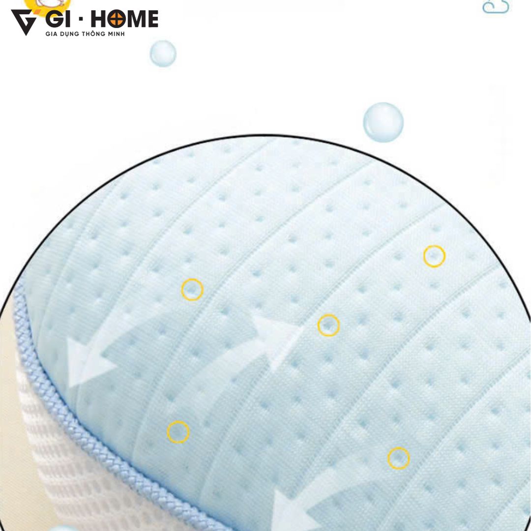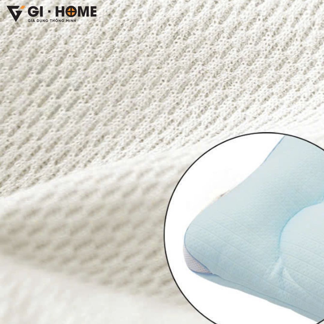 Vỏ gối được dệt kim cao cấp mang lại cảm giác mịn màng, thoáng khí và mát lạnh. Bé nằm thoải mái cả ngày lẫn đêm, hạn chế đổ mồ hôi đầu.