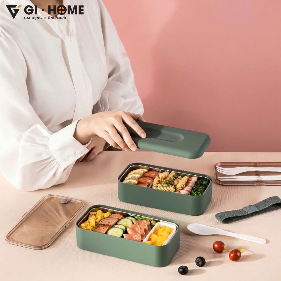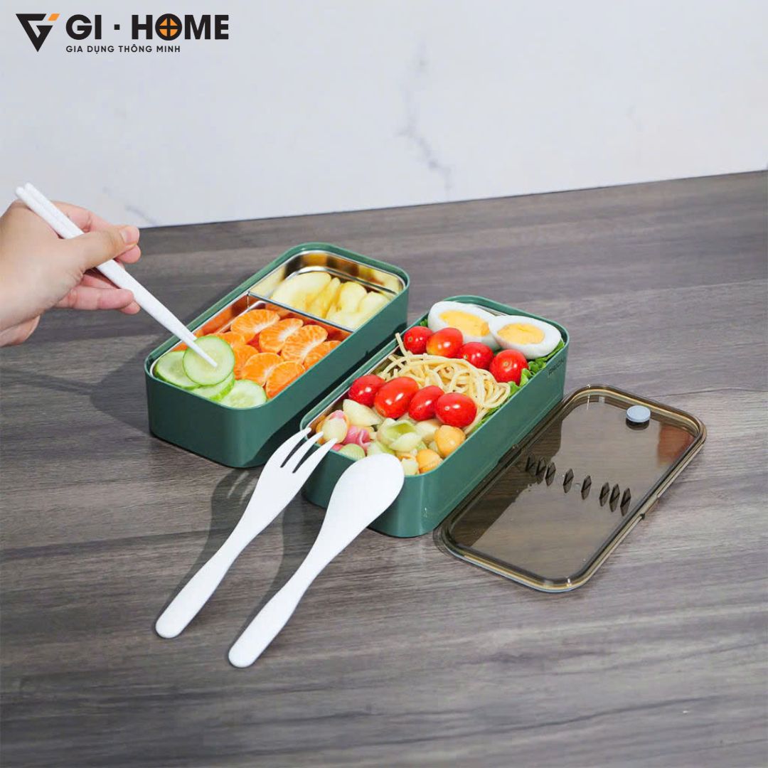Hai tầng tách biệt giúp phân chia cơm – món mặn – món nước hoặc trái cây tráng miệng, hạn chế trộn mùi, giữ bữa ăn luôn ngon miệng và đẹp mắt.