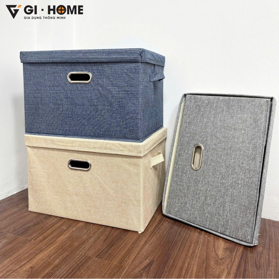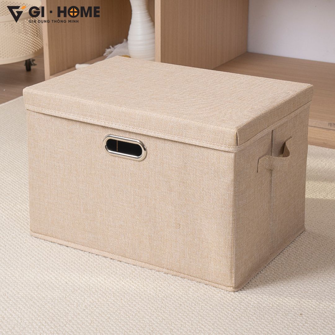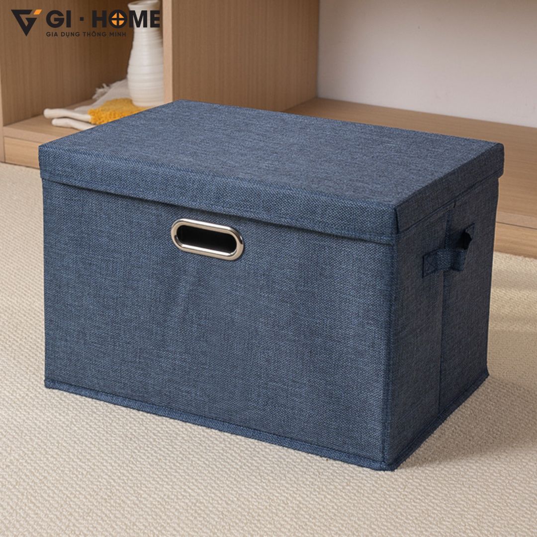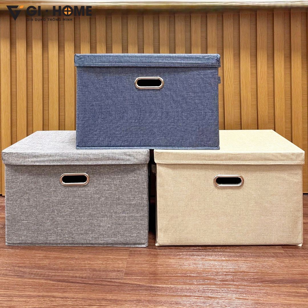 Hộp đựng quần áo có nắp đậy là giải pháp lưu trữ tiện lợi giúp giữ quần áo, chăn mền và vật dụng gia đình luôn gọn gàng, sạch sẽ. Sản phẩm có kích thước 44 x 29 x 30 cm, chất liệu vải lanh và cotton dày dặn, không mùi, an toàn cho người dùng. Thiết kế có nắp đậy chống bụi và ẩm mốc hiệu quả, kết hợp khung hộp chắc chắn cùng tay cầm tiện lợi, dễ dàng di chuyển và xếp gọn khi không sử dụng.
