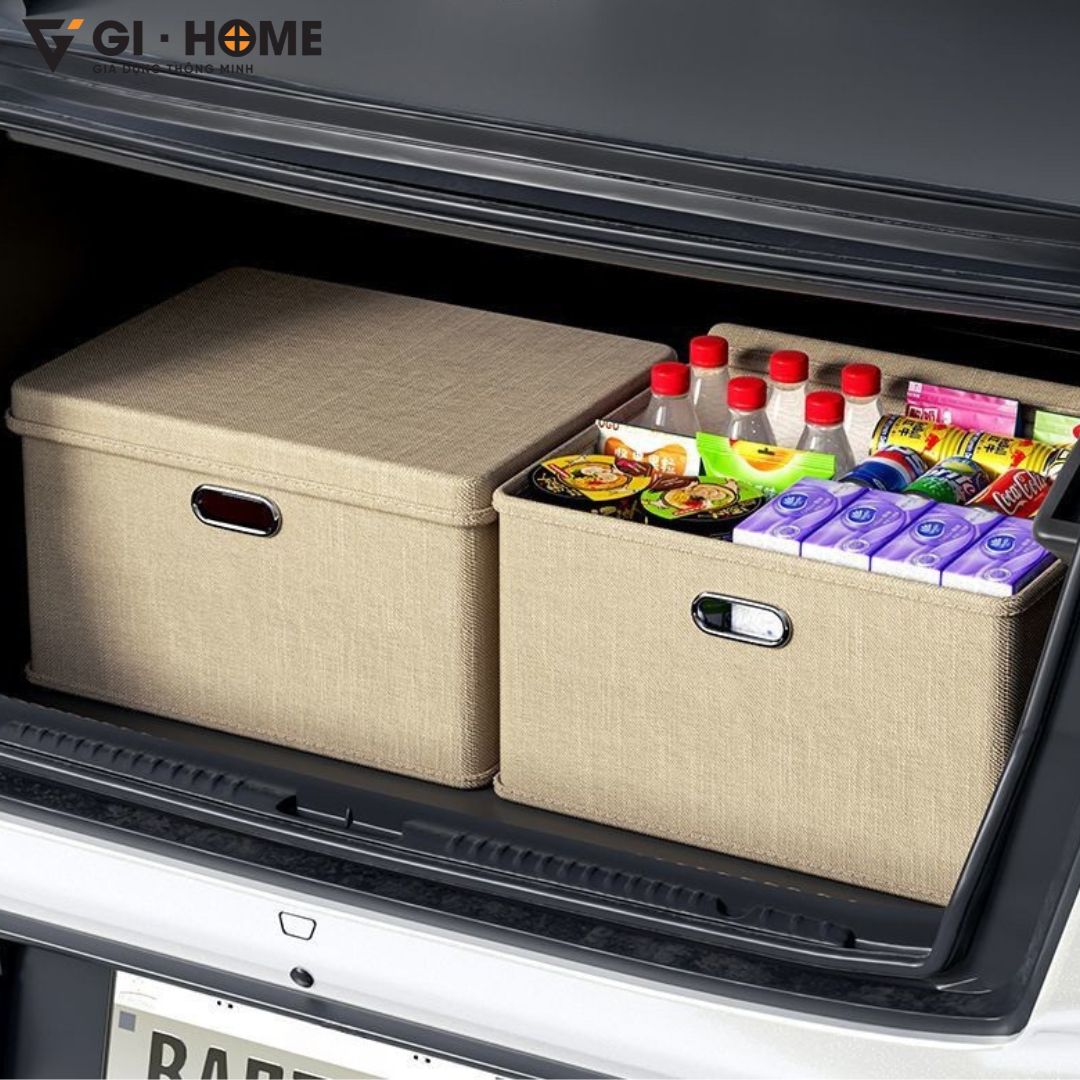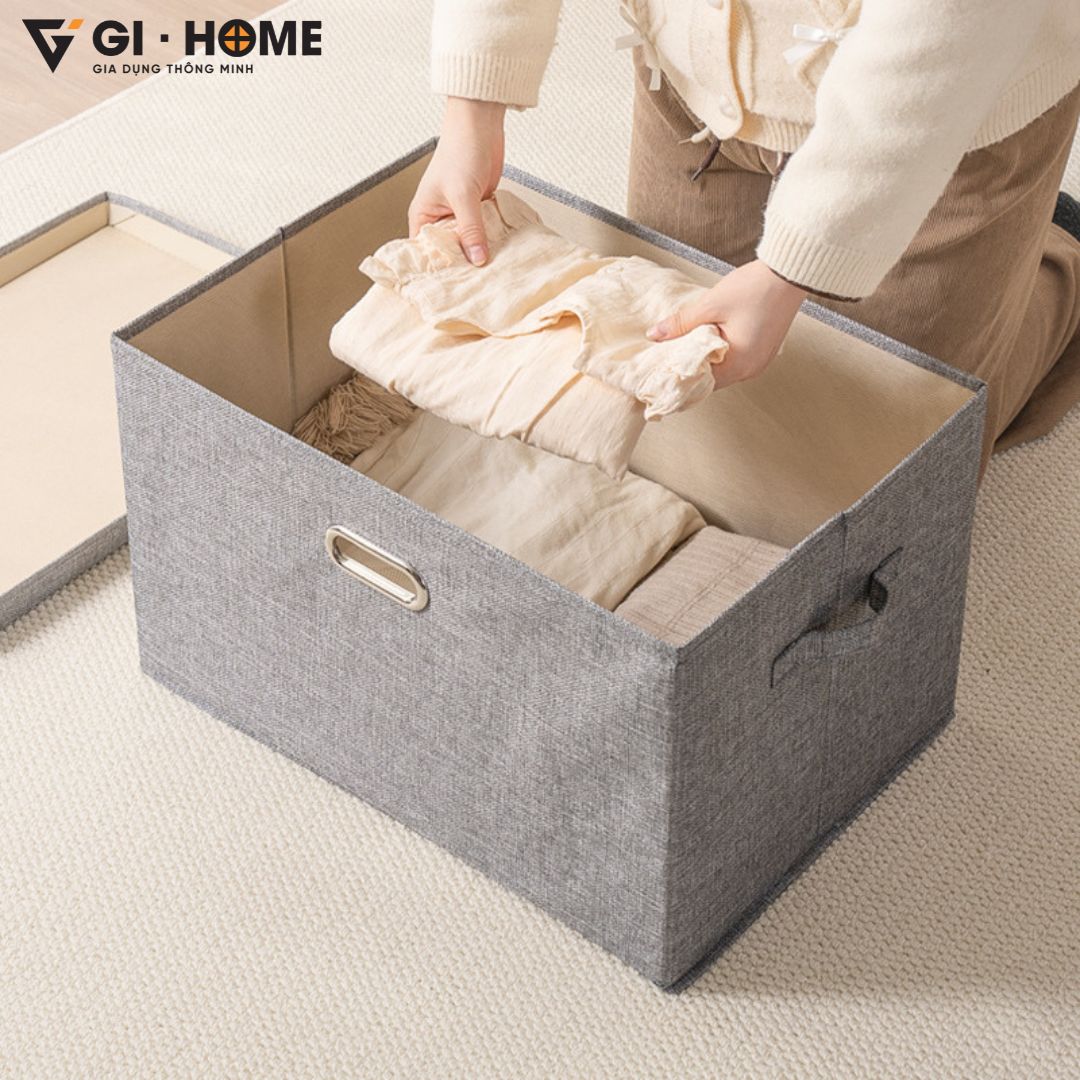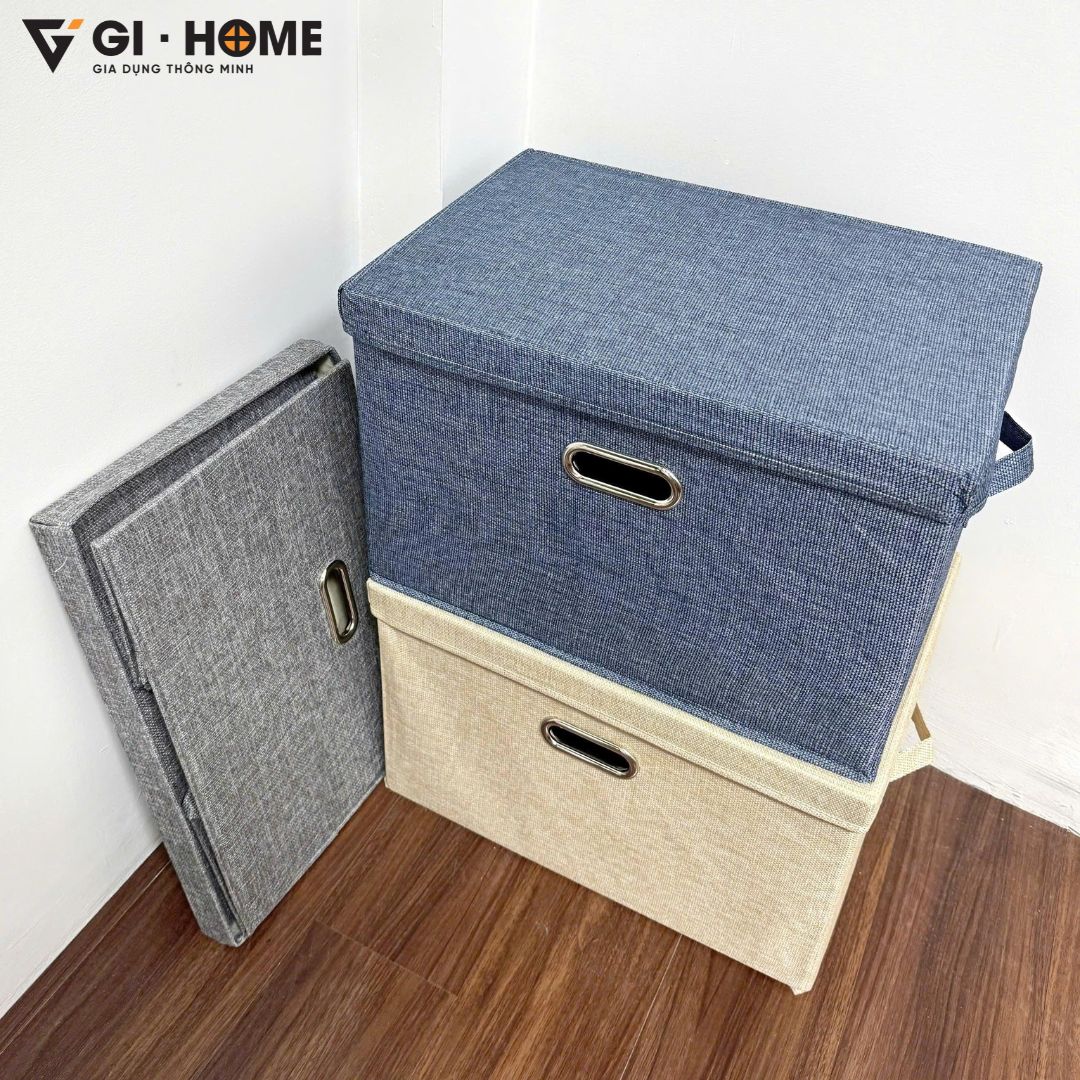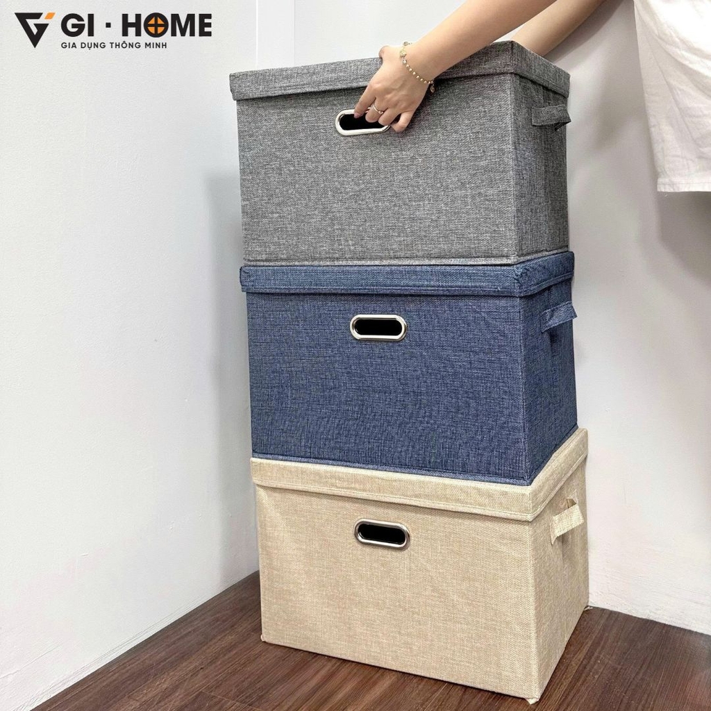 Hộp đựng quần áo có nắp đậy là giải pháp lưu trữ tiện lợi giúp giữ quần áo, chăn mền và vật dụng gia đình luôn gọn gàng, sạch sẽ. Sản phẩm có kích thước 44 x 29 x 30 cm, chất liệu vải lanh và cotton dày dặn, không mùi, an toàn cho người dùng. Thiết kế có nắp đậy chống bụi và ẩm mốc hiệu quả, kết hợp khung hộp chắc chắn cùng tay cầm tiện lợi, dễ dàng di chuyển và xếp gọn khi không sử dụng.