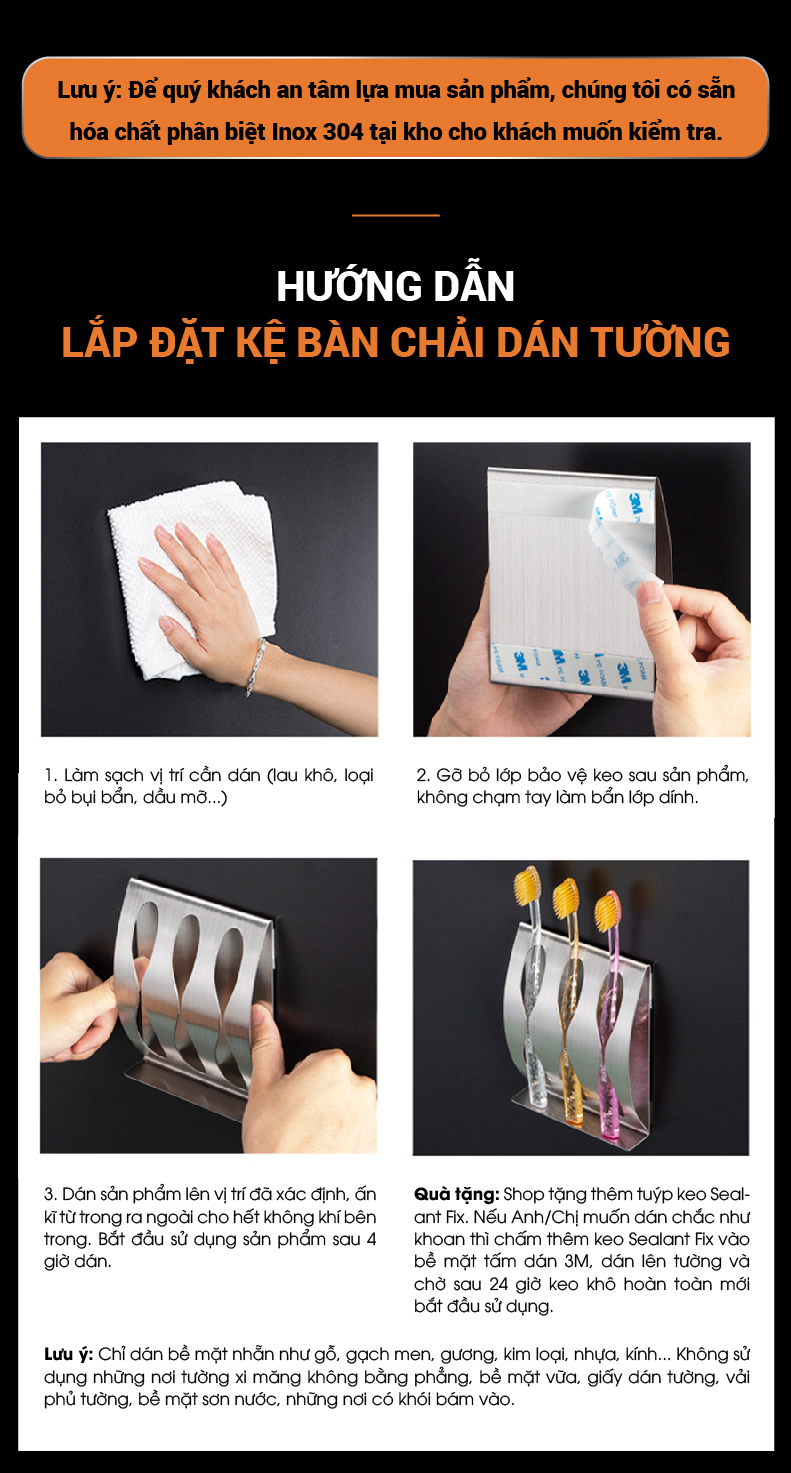Lưu ý: Để sử dụng hiệu quả nhất, khách hàng nên dán lên tường và để qua 24h mới treo phụ kiện, vật dụng lên. Khi khách hàng tháo ra vệ sinh bề mặt, trước khi dán lại nên sấy nóng bề mặt dán sẽ tăng hiệu quả bám dính tối đa.