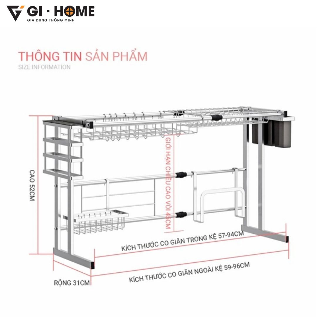 Với thiết kế kích thước to nhưng vẫn thon gọn để được nhiều đồ như vậy, kệ úp bát Gi-Home KC17 vẫn đảm bảo khoảng cách hợp lý không bị vướng hay che khuất tầm nhìn khi sử dụng