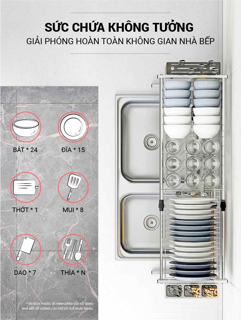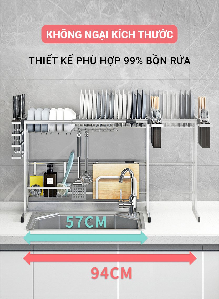 Với thiết kế kích thước to nhưng vẫn thon gọn để được nhiều đồ như vậy, kệ úp bát Gi-Home KC18 vẫn đảm bảo khoảng cách hợp lý không bị vướng hay che khuất tầm nhìn khi sử dụng