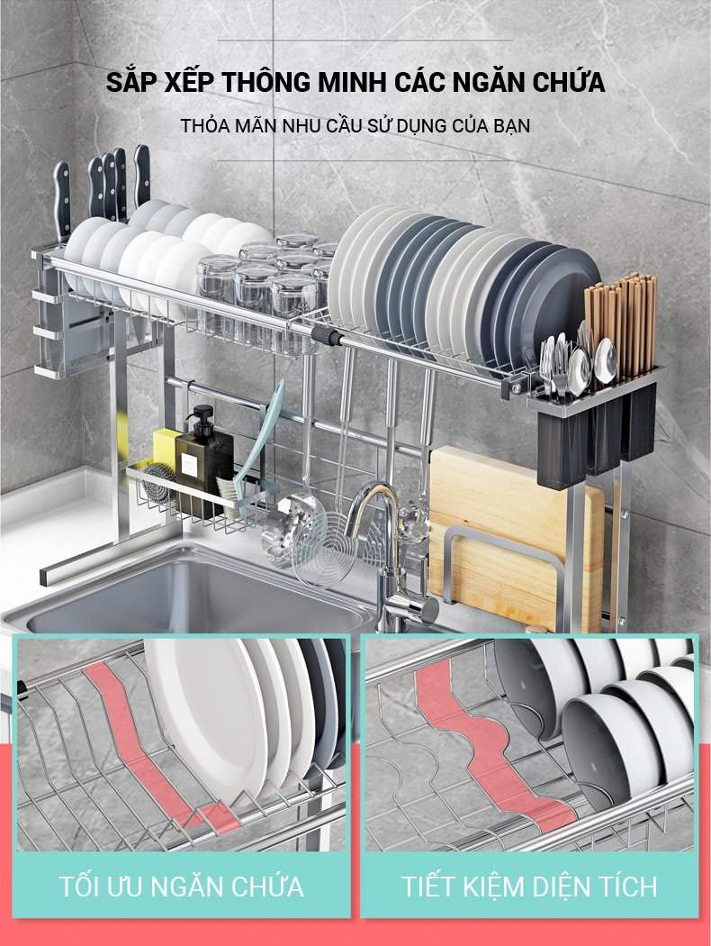 Với Kệ úp bát trên chậu rửa chén Gi-Home KC18 bạn dễ dàng phân loại mọi vật dụng như bát, đĩa, dao, muỗng, đũa, thớt, ly hay nước rửa bát...