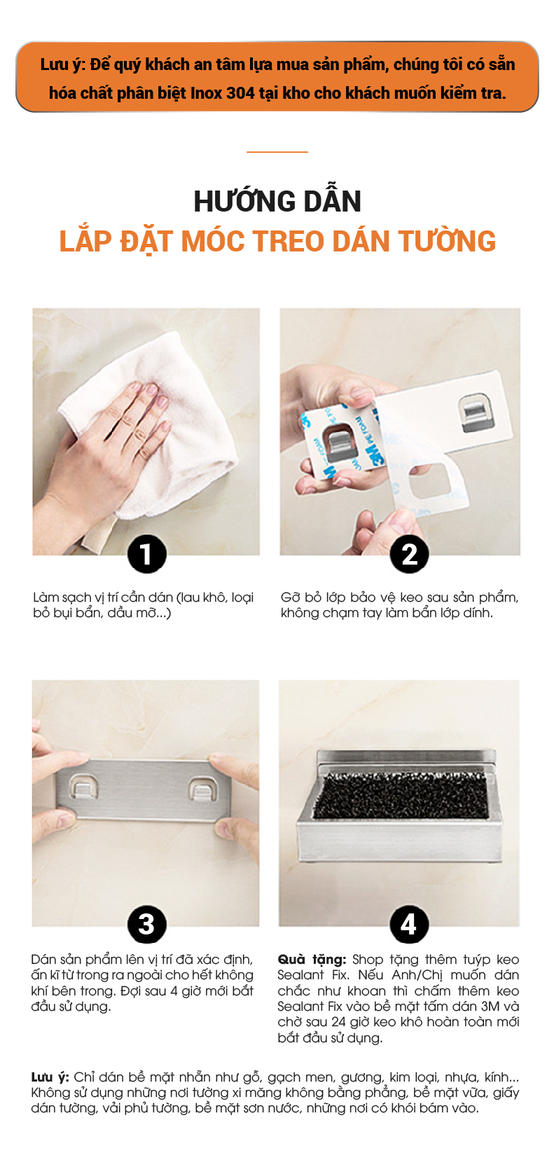 - Bạn có thể dán và sử dụng công nghệ keo 3M trên bề mặt nhẵn như gỗ, gạch men, gương, kim loại, nhựa, kính, vách...