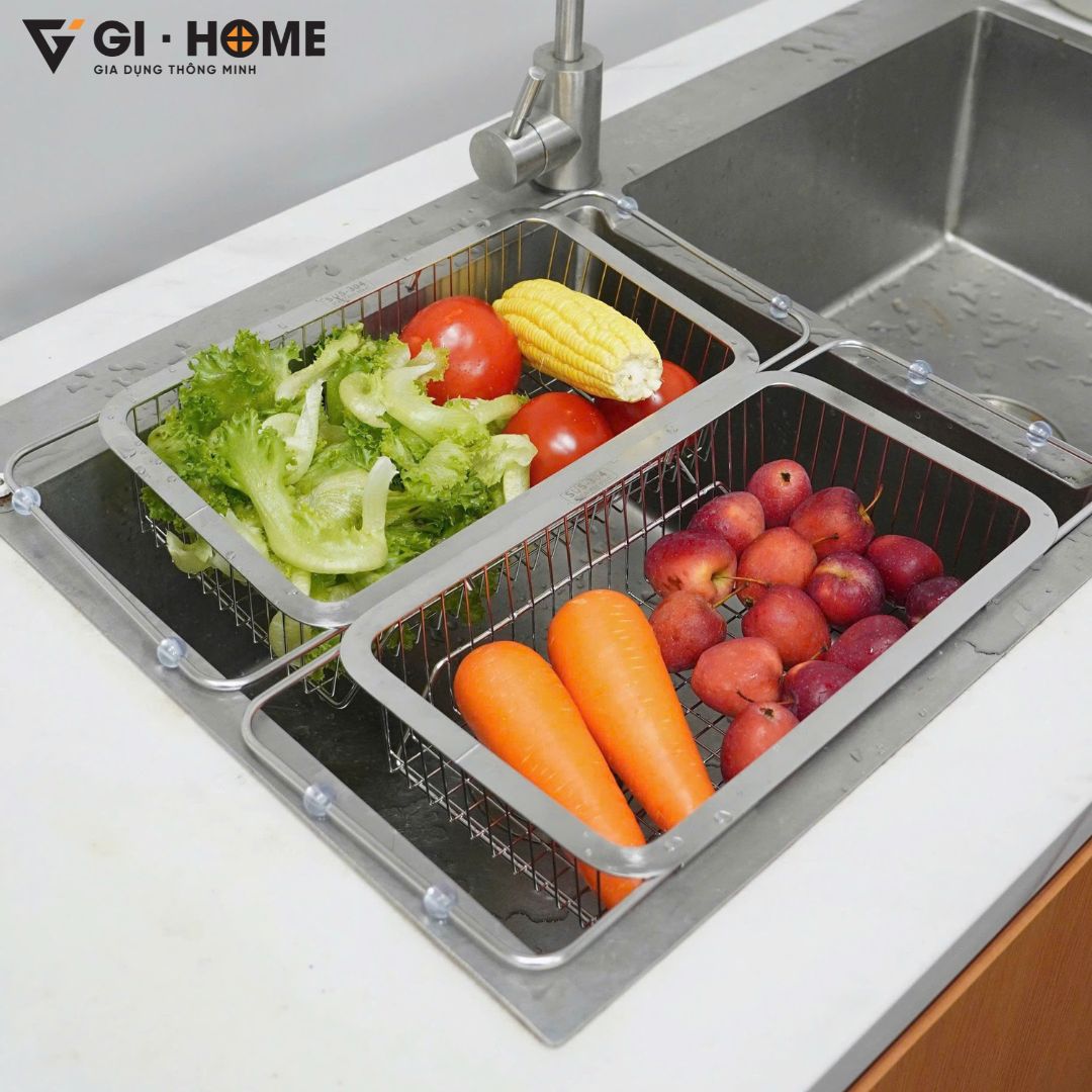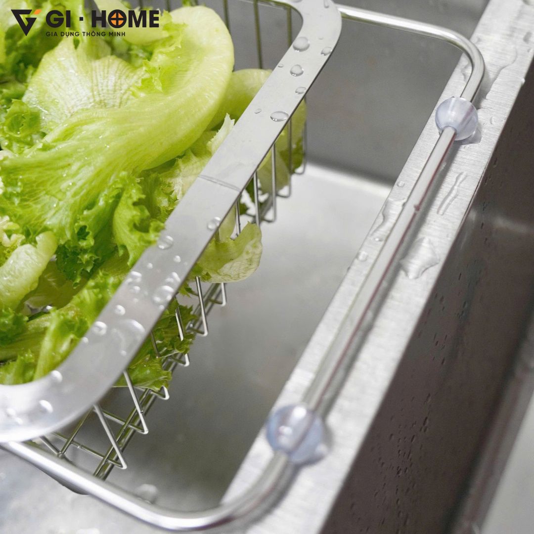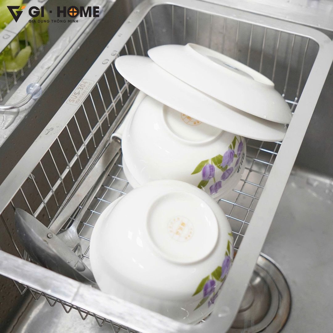 Kệ gác bồn rửa bát đa năng Gi-Home là giải pháp thông minh giúp tối ưu không gian bếp và tăng hiệu quả trong từng thao tác nấu nướng. Với thiết kế kéo dài linh hoạt từ 33.5 ~ 46cm, sản phẩm dễ dàng tương thích nhiều loại bồn rửa khác nhau. Làm từ inox 304 cao cấp, kệ sáng bóng, chống gỉ sét và bền bỉ theo thời gian. Đây là lựa chọn hoàn hảo để rửa rau củ, úp chén đĩa hoặc để ráo nước các vật dụng sau khi rửa, giúp bếp luôn gọn gàng, sạch sẽ.