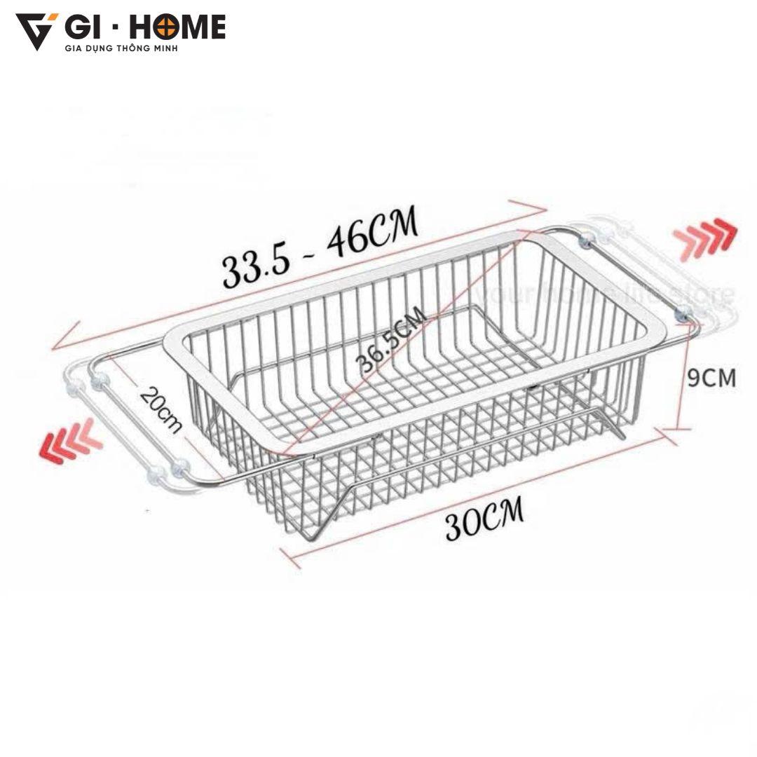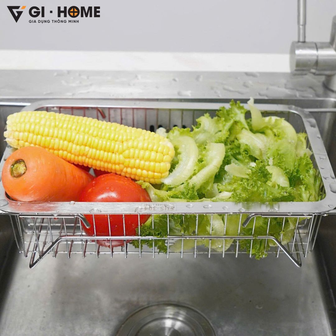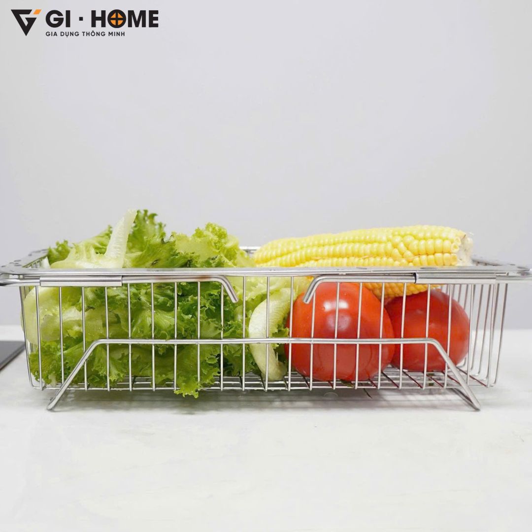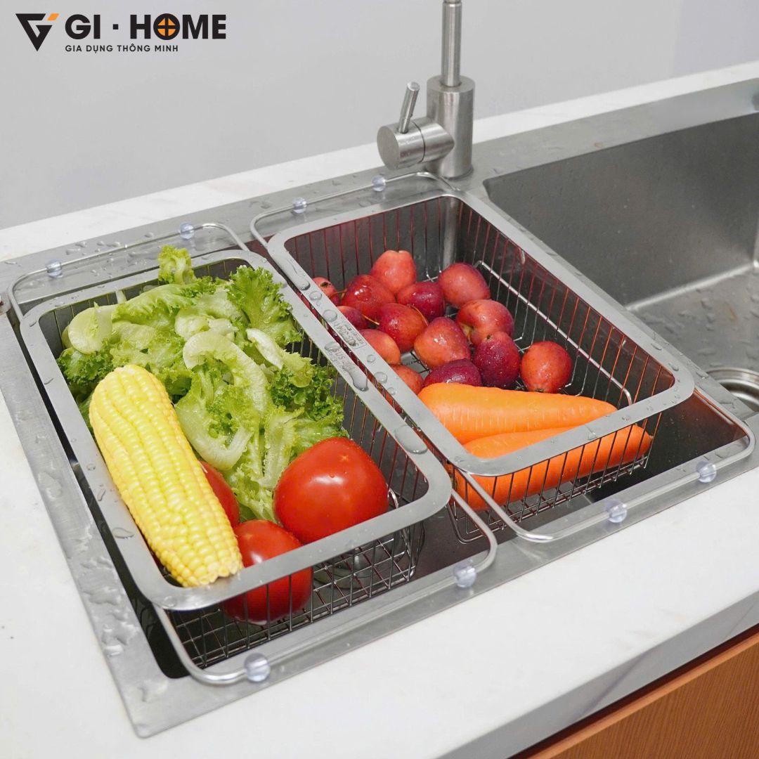 Kệ gác bồn rửa bát đa năng Gi-Home là giải pháp thông minh giúp tối ưu không gian bếp và tăng hiệu quả trong từng thao tác nấu nướng. Với thiết kế kéo dài linh hoạt từ 33.5 ~ 46cm, sản phẩm dễ dàng tương thích nhiều loại bồn rửa khác nhau. Làm từ inox 304 cao cấp, kệ sáng bóng, chống gỉ sét và bền bỉ theo thời gian. Đây là lựa chọn hoàn hảo để rửa rau củ, úp chén đĩa hoặc để ráo nước các vật dụng sau khi rửa, giúp bếp luôn gọn gàng, sạch sẽ.