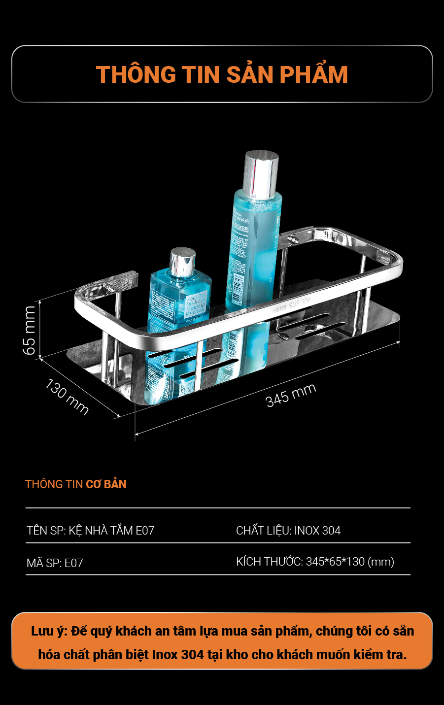 Hàng trăm gia đình đã tin tưởng sử dụng sản phẩm cho tổ ấm của mình. Vậy bạn còn băn khoăn gì nữa mà không mau chóng đặt cho mình và gia đình sản phẩm Kệ ngang để vật dụng nhà tắm E07 thông minh và tiện lợi này? Các đơn đặt hàng của các bạn sẽ được chúng tôi xử lý ngay và giao hàng nhanh chóng. Quý khách sẽ nhận được đơn hàng của mình trong thời gian sớm nhất. Mọi thắc mắc về sản phẩm hoặc dịch vụ, quý khách có thể gọi về hotline của cửa hàng.