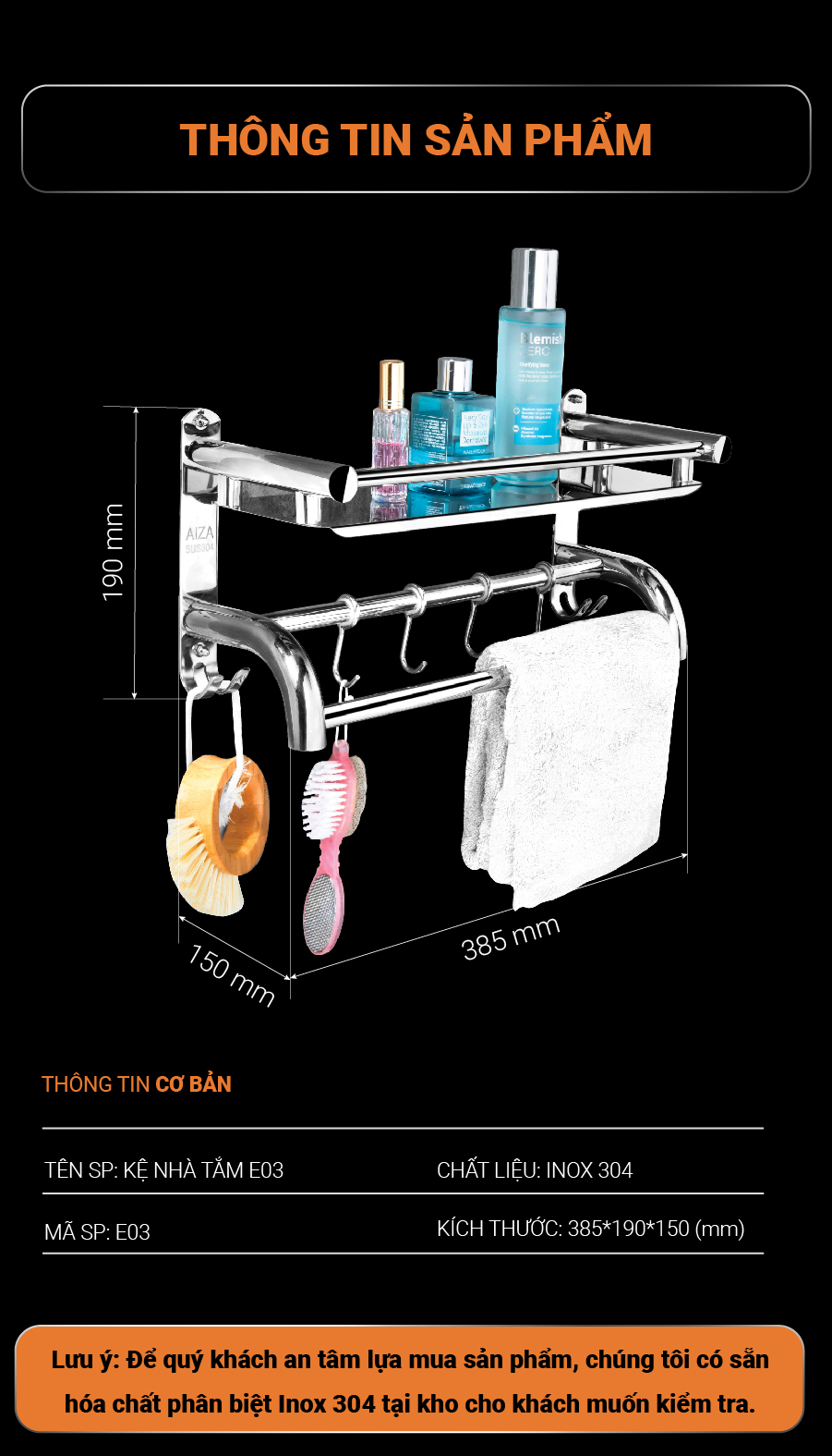 Hàng trăm gia đình đã tin tưởng sử dụng sản phẩm cho tổ ấm của mình. Vậy bạn còn băn khoăn gì nữa mà không mau chóng đặt cho mình và gia đình sản phẩm Kệ ngang inox 304 dán tường Gi-Home E03 thông minh và tiện lợi này? Các đơn đặt hàng của các bạn sẽ được chúng tôi xử lý ngay và giao hàng nhanh chóng. Quý khách sẽ nhận được đơn hàng của mình trong thời gian sớm nhất. Mọi thắc mắc về sản phẩm hoặc dịch vụ, quý khách có thể gọi về hotline của cửa hàng.