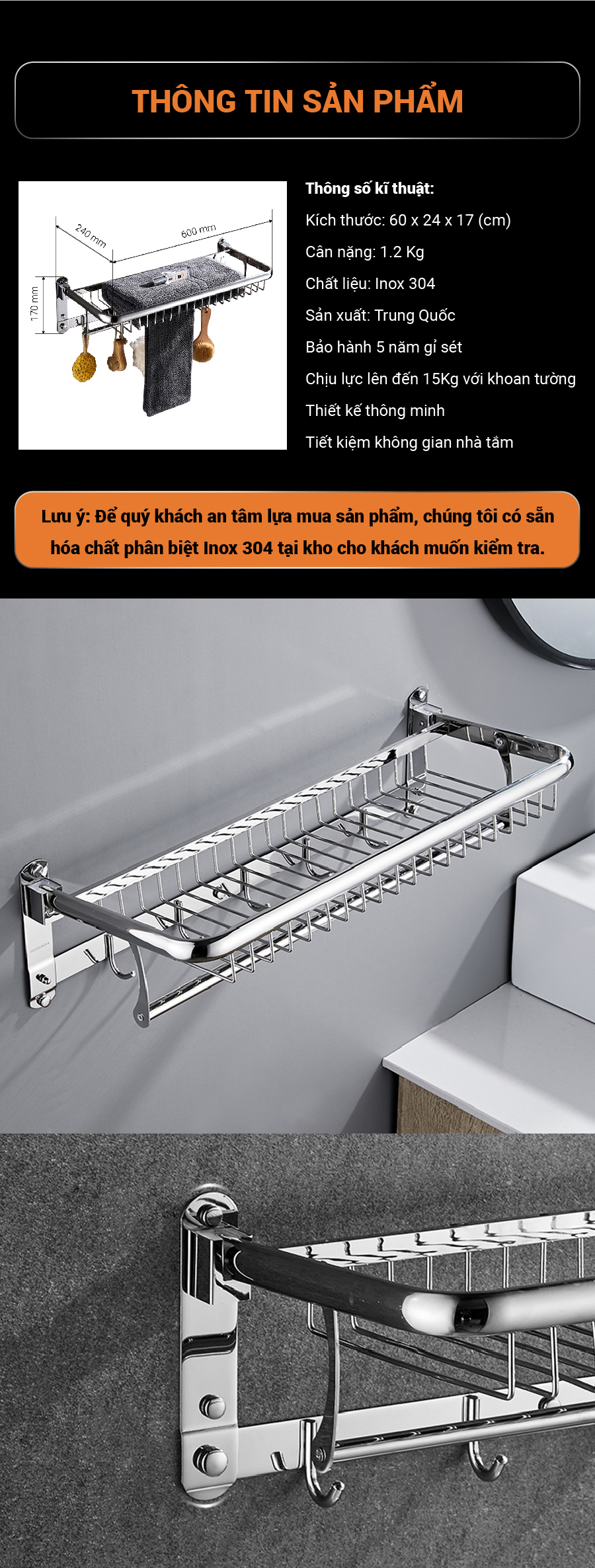 LƯU Ý: Để quý khách an tâm lựa mua sản phẩm, chúng tôi có sẵn hoá chất phân biệt inox 304 tại kho cho khách muốn kiểm tra.