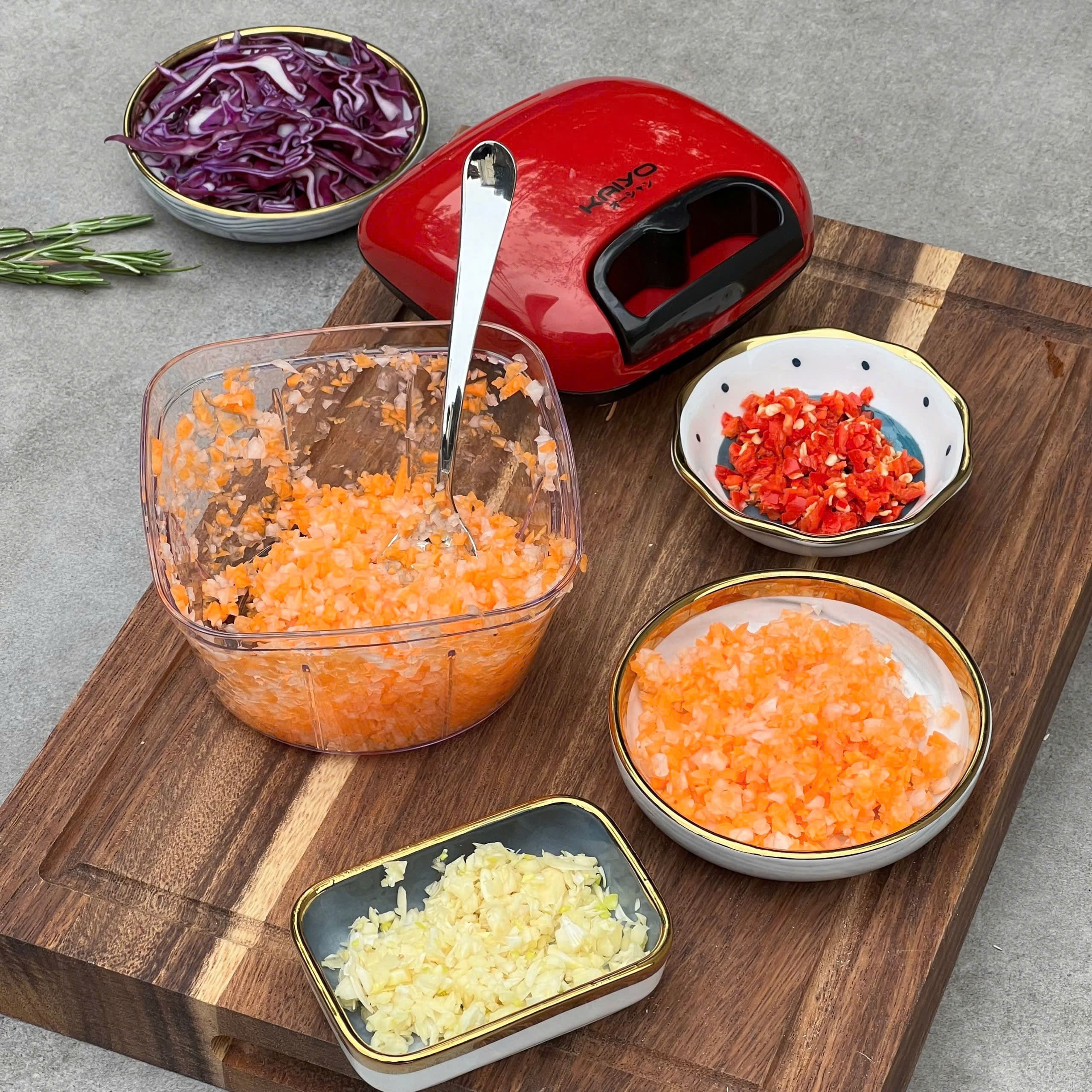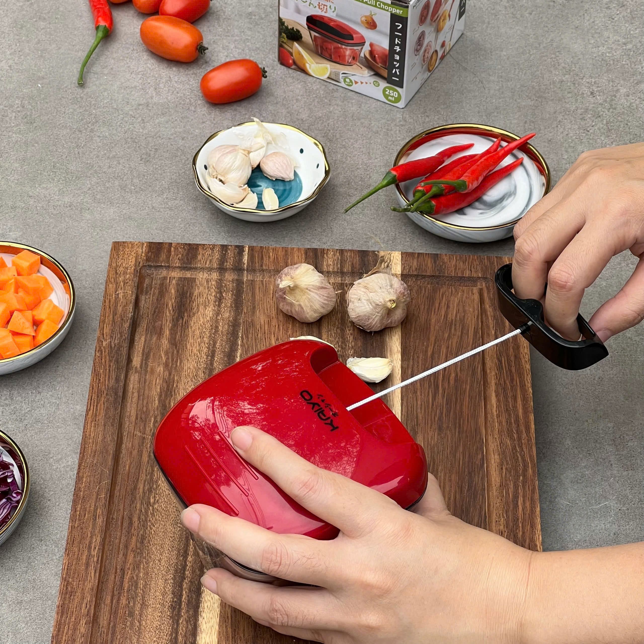 Máy xay tỏi Kaiyo là trợ thủ bếp nhỏ gọn dành cho những ai thường xuyên nấu ăn nhưng ngại băm tỏi, ớt, nấm hay thịt bằng tay. Chỉ cần cho nguyên liệu vào, đậy nắp và thao tác đơn giản là đã có thành phẩm nhuyễn đều trong thời gian ngắn. Sản phẩm sử dụng nhựa thủy tinh PS trong suốt, kết hợp lưỡi dao inox sắc bén, giúp xay nhanh, dễ vệ sinh và phù hợp sử dụng hằng ngày trong gian bếp gia đình.