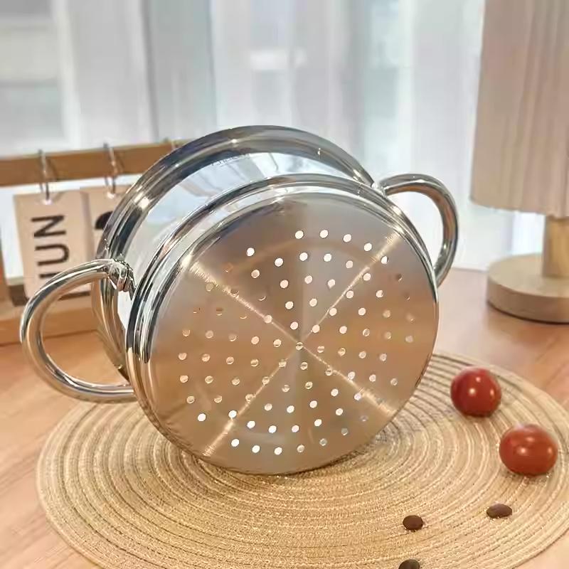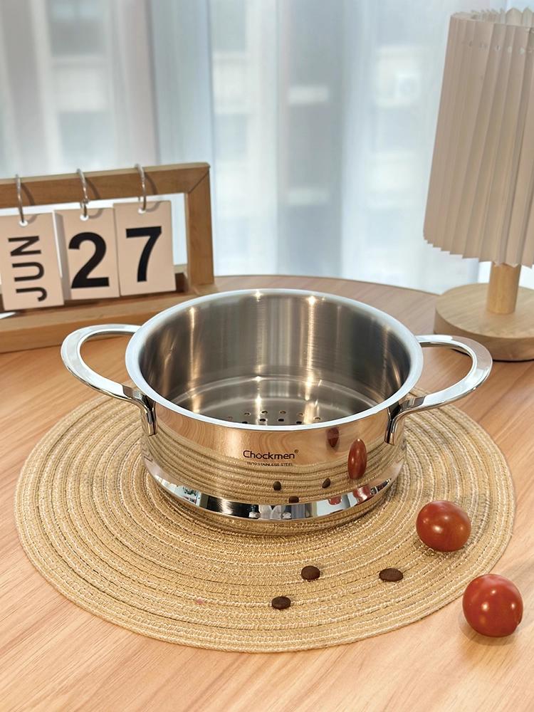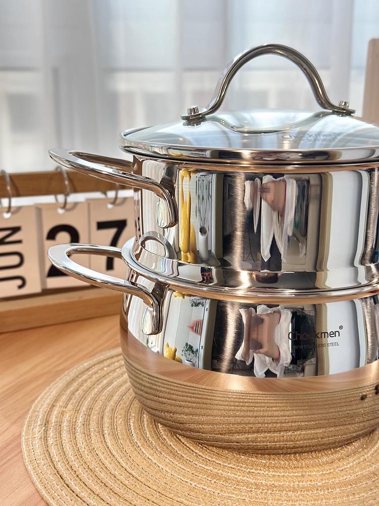 Nồi kèm xửng hấp 2 tầng Chockmen là lựa chọn phù hợp cho những gia đình muốn tối ưu việc nấu nướng mỗi ngày. Thiết kế 2 trong 1 giúp vừa nấu canh, cháo ở tầng dưới, vừa hấp rau củ, bánh bao, thịt, cá hoặc gà nguyên con ở tầng trên. Chất liệu inox 18/10 cao cấp sáng bóng, bền bỉ và an toàn cho sức khỏe, giúp việc nấu ăn nhanh gọn mà vẫn giữ trọn dinh dưỡng cho bữa cơm gia đình.