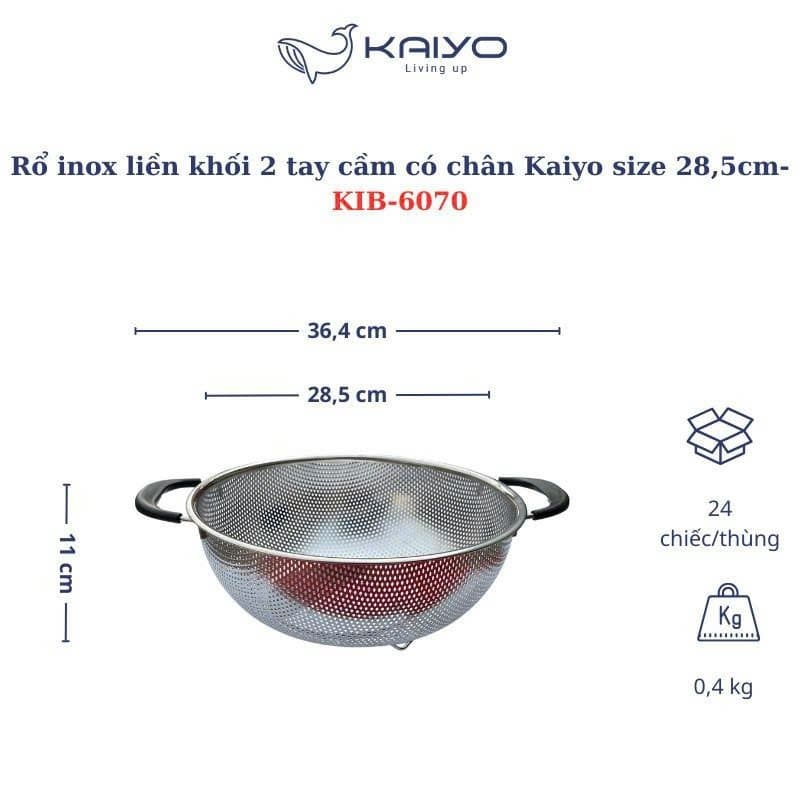 Rổ inox liền khối 2 tay cầm Kaiyo là lựa chọn phù hợp cho gia đình muốn thay mới dụng cụ bếp bền đẹp và an toàn. Sản phẩm được gia công liền khối với công nghệ đục lỗ Punching Hole, bề mặt trơn nhẵn, sáng bóng, không gây trầy xước da tay khi sử dụng. Thiết kế có chân giúp thoát nước nhanh, tay cầm chắc chắn, tiện lợi cho việc rửa và để ráo thực phẩm hằng ngày.