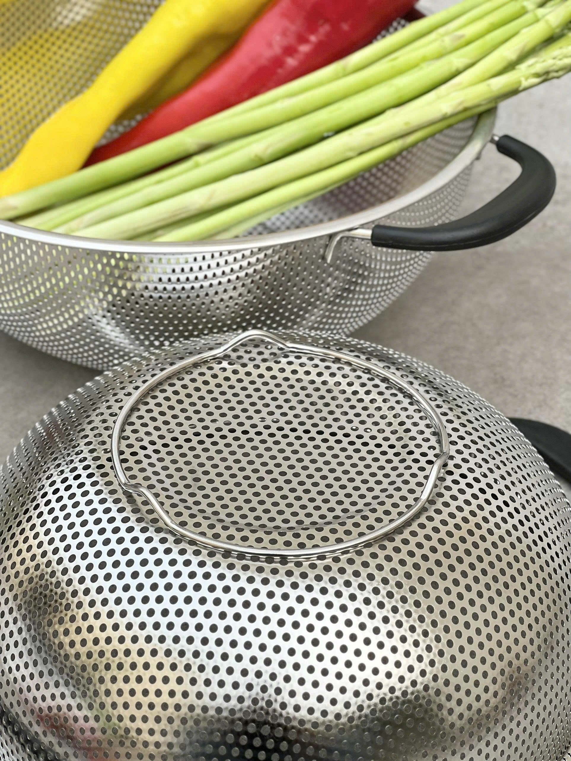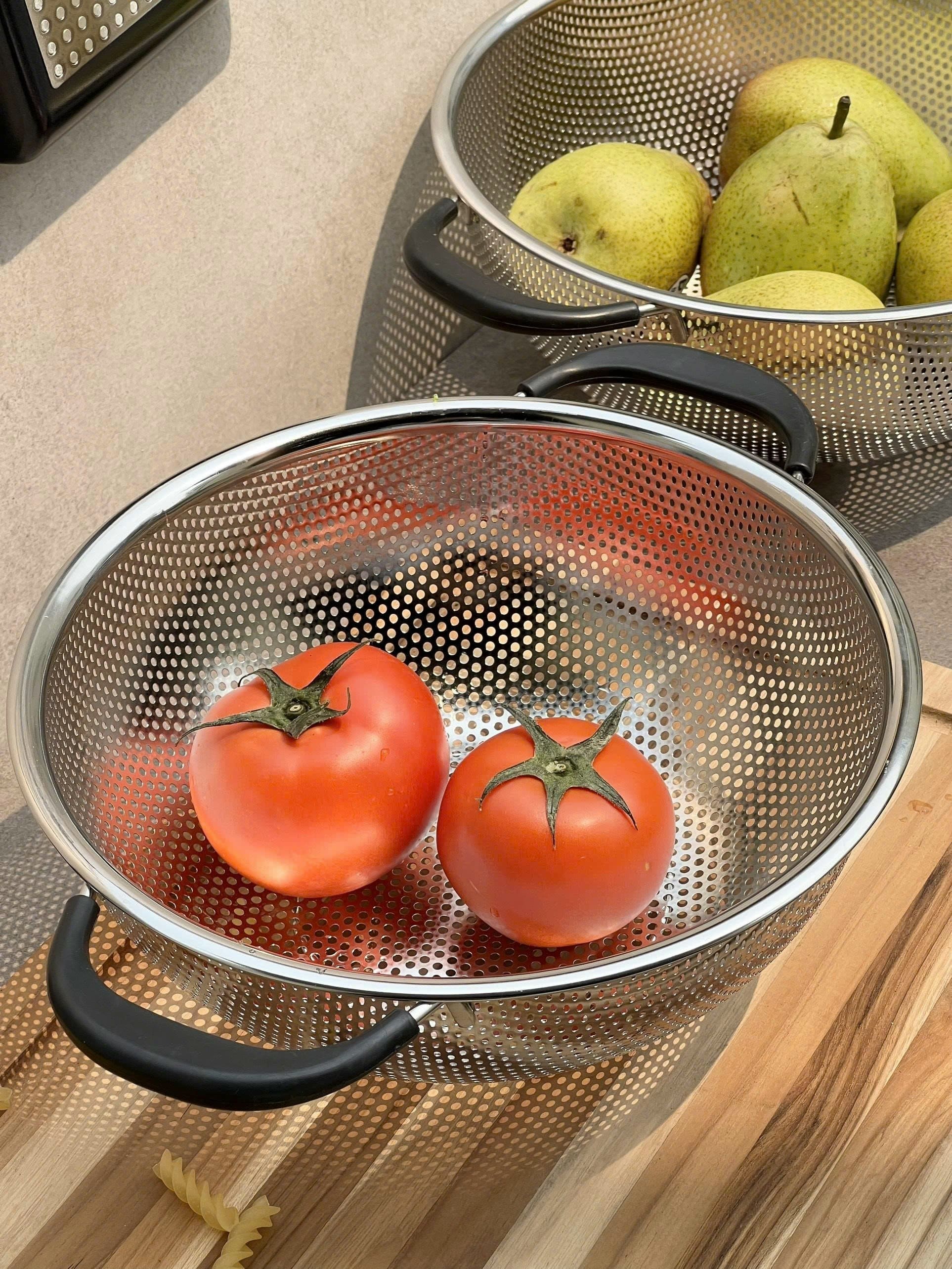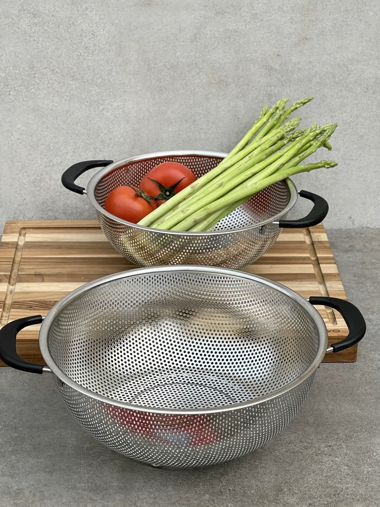Thiết kế chân giúp rổ không tiếp xúc trực tiếp mặt bàn hoặc bồn rửa, tăng khả năng thoát nước và giữ thực phẩm khô ráo hơn.