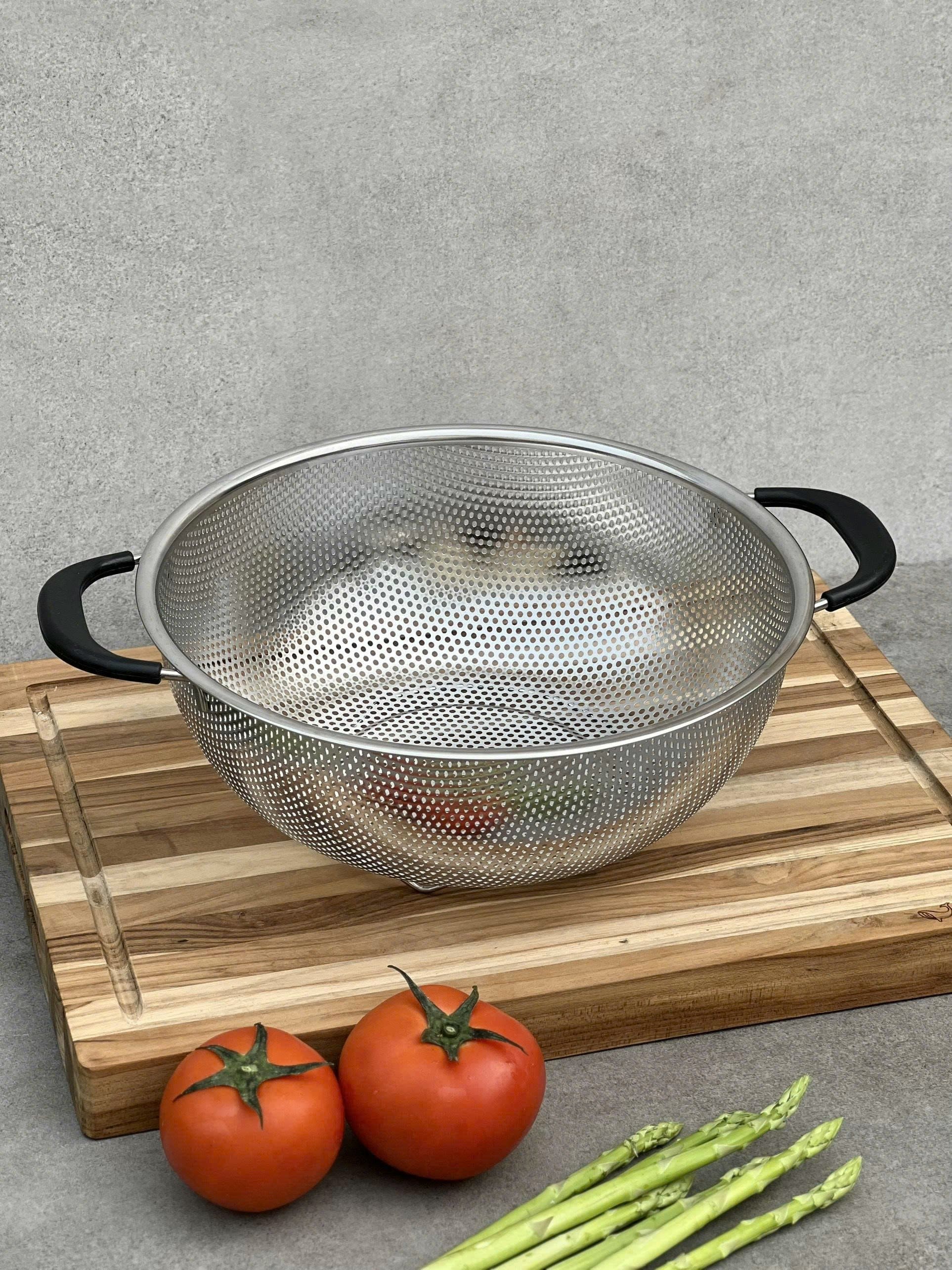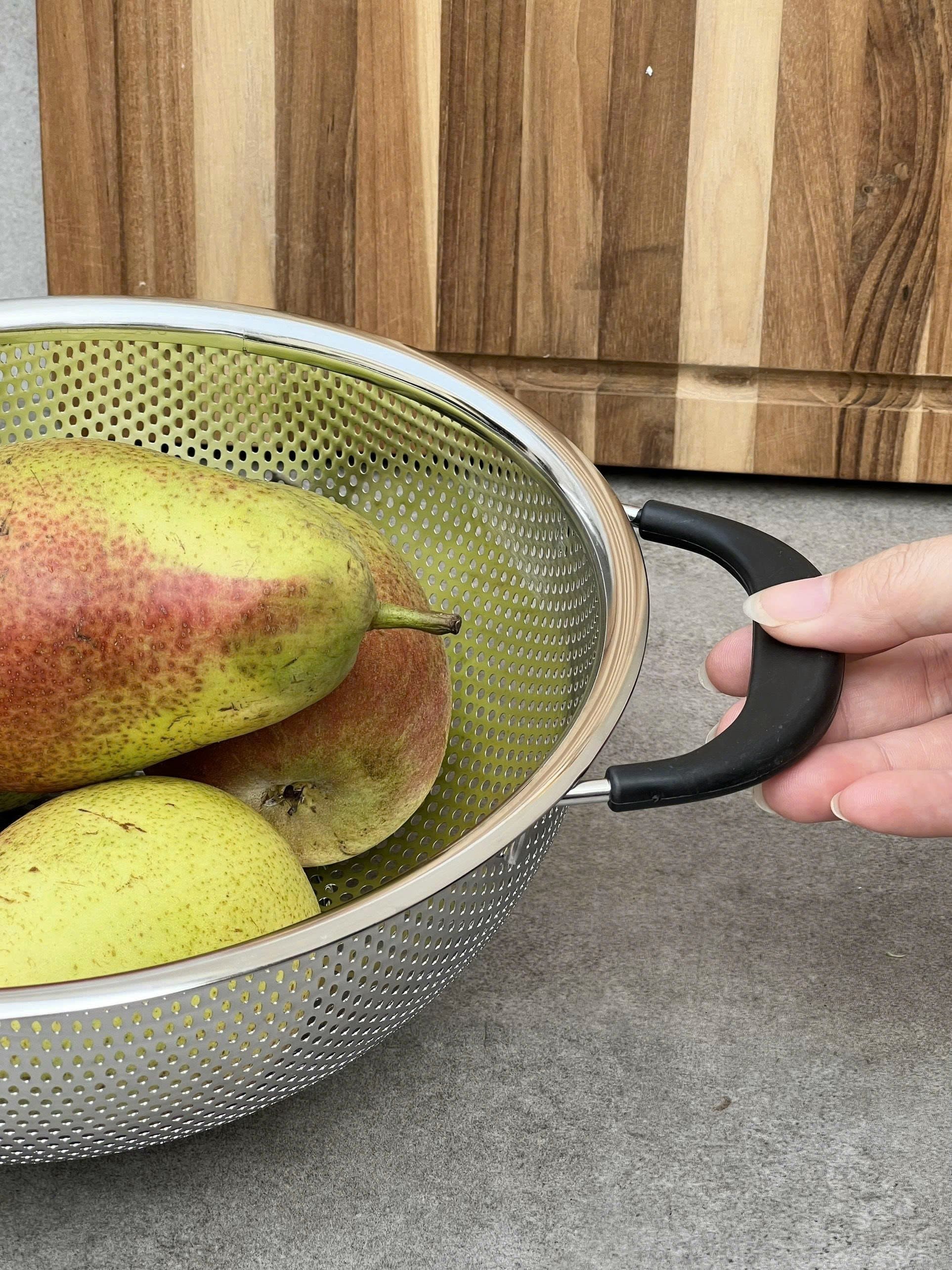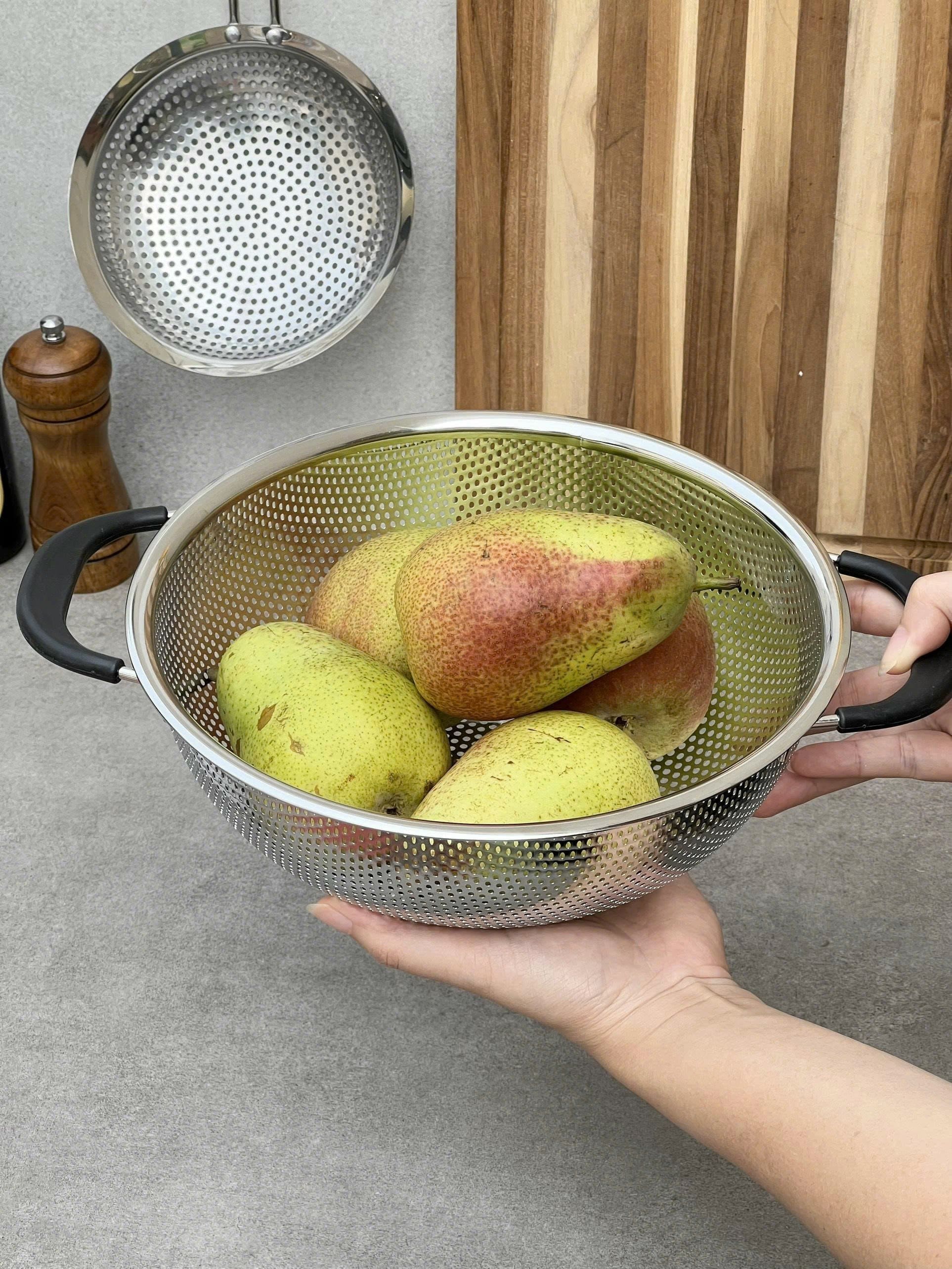 Thiết kế chân giúp rổ không tiếp xúc trực tiếp mặt bàn hoặc bồn rửa, tăng khả năng thoát nước và giữ thực phẩm khô ráo hơn.