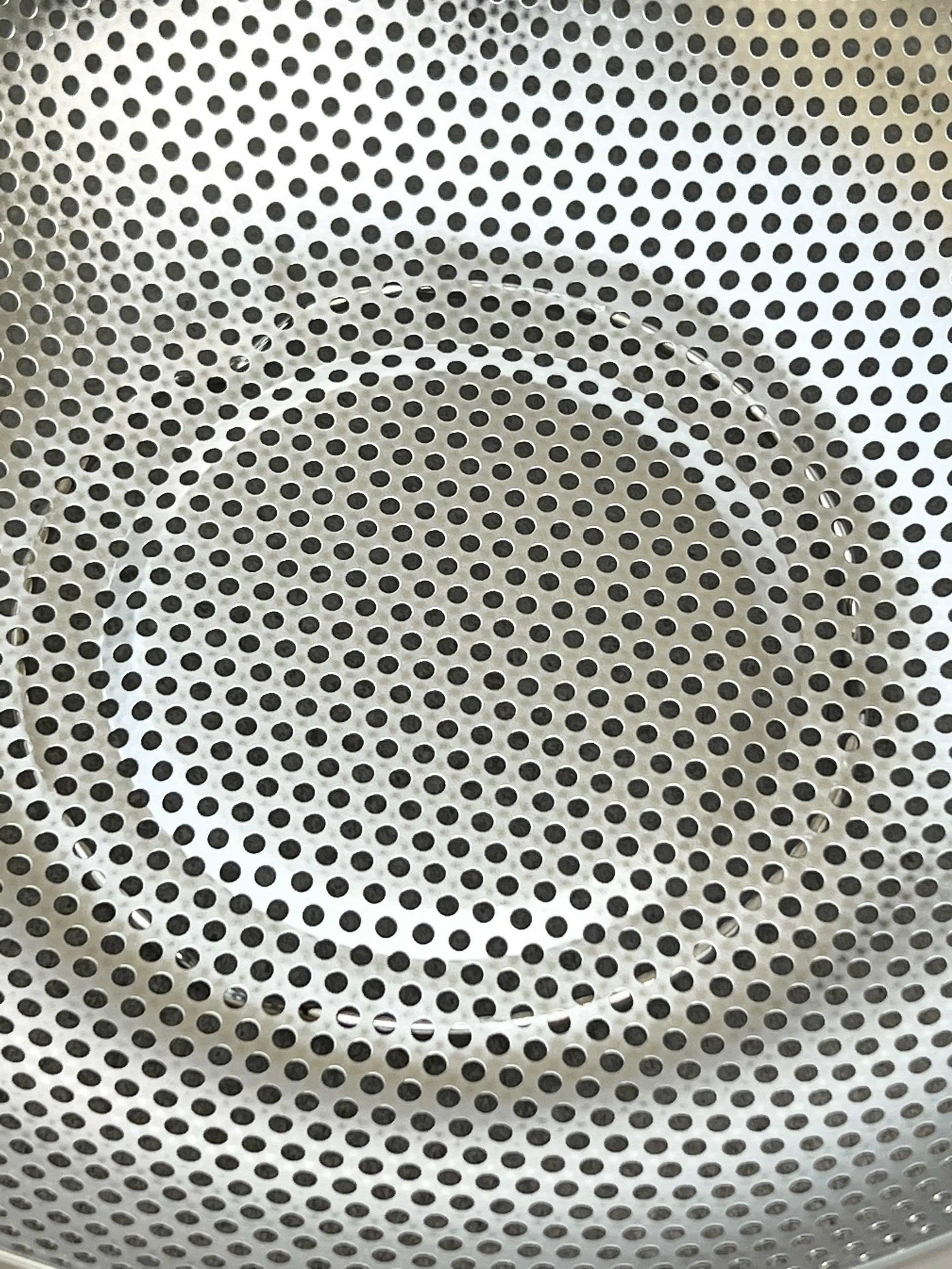 Các lỗ thoát nước được đục đồng đều, không quá lớn, giúp thoát nước nhanh mà vẫn hạn chế rơi rớt nguyên liệu trong quá trình rửa.